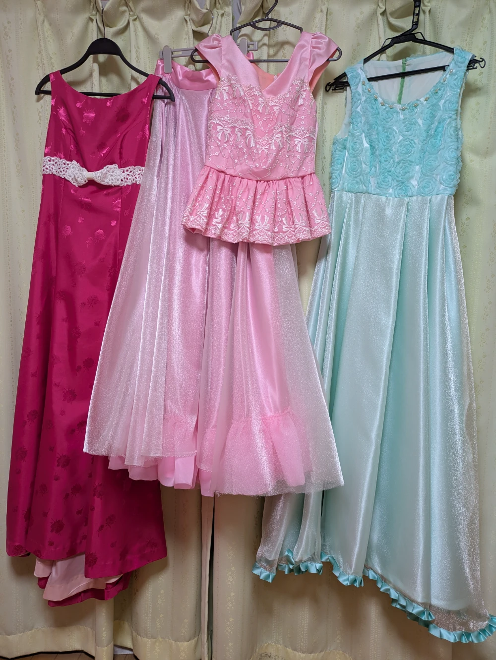 私の12年間のコンペティションを語る上で欠かせないのは、母が作ってくれた数々のステージドレスです。姉の影響でピアノを始めた幼稚園の頃から、母は私の弾く曲のイメージに合わせて、一針一針ドレスを縫い上げてくれました。